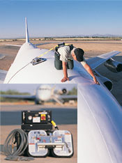 on the wings, fuselage, and tail sections of planes Versatile and portable system can be used inside or outside the